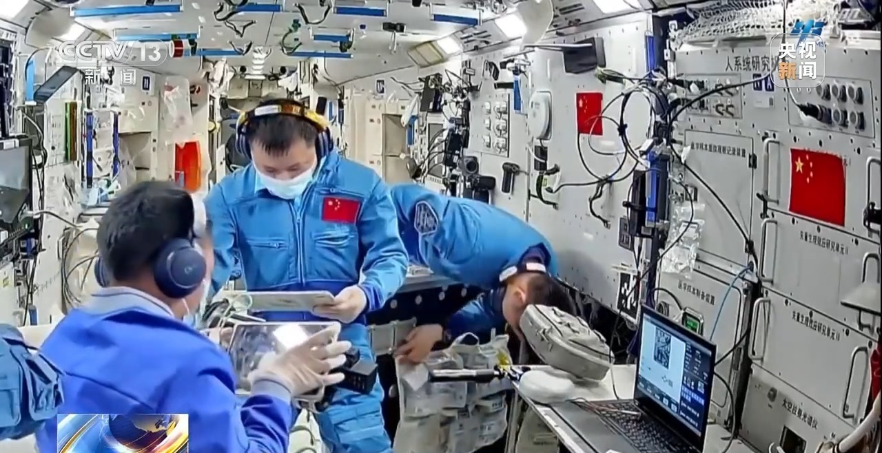 在航天医学实验领域,三名航天员使用笔记本电脑及相关软件完成了信任与协同机制、精细动作控制、应急决策能力评估等多项实验的测试工作。乘组开展了运动骨骼肌受力研究相关工作,采集飞行中不同负荷状态下跑步、抗阻运动的足底压力、关节运动学数据和图像,获取不同运动状态参数与足底压力的映射关系。